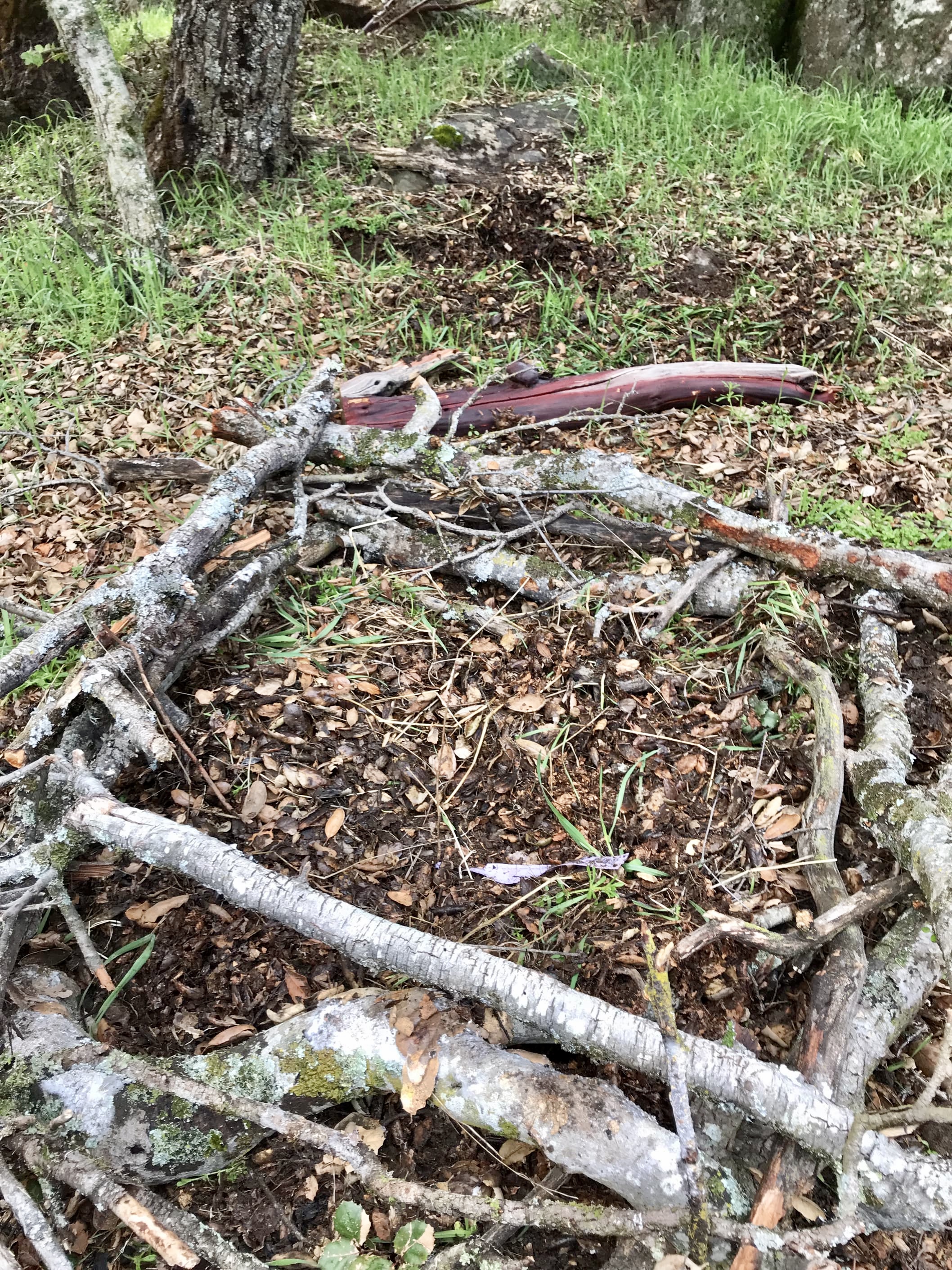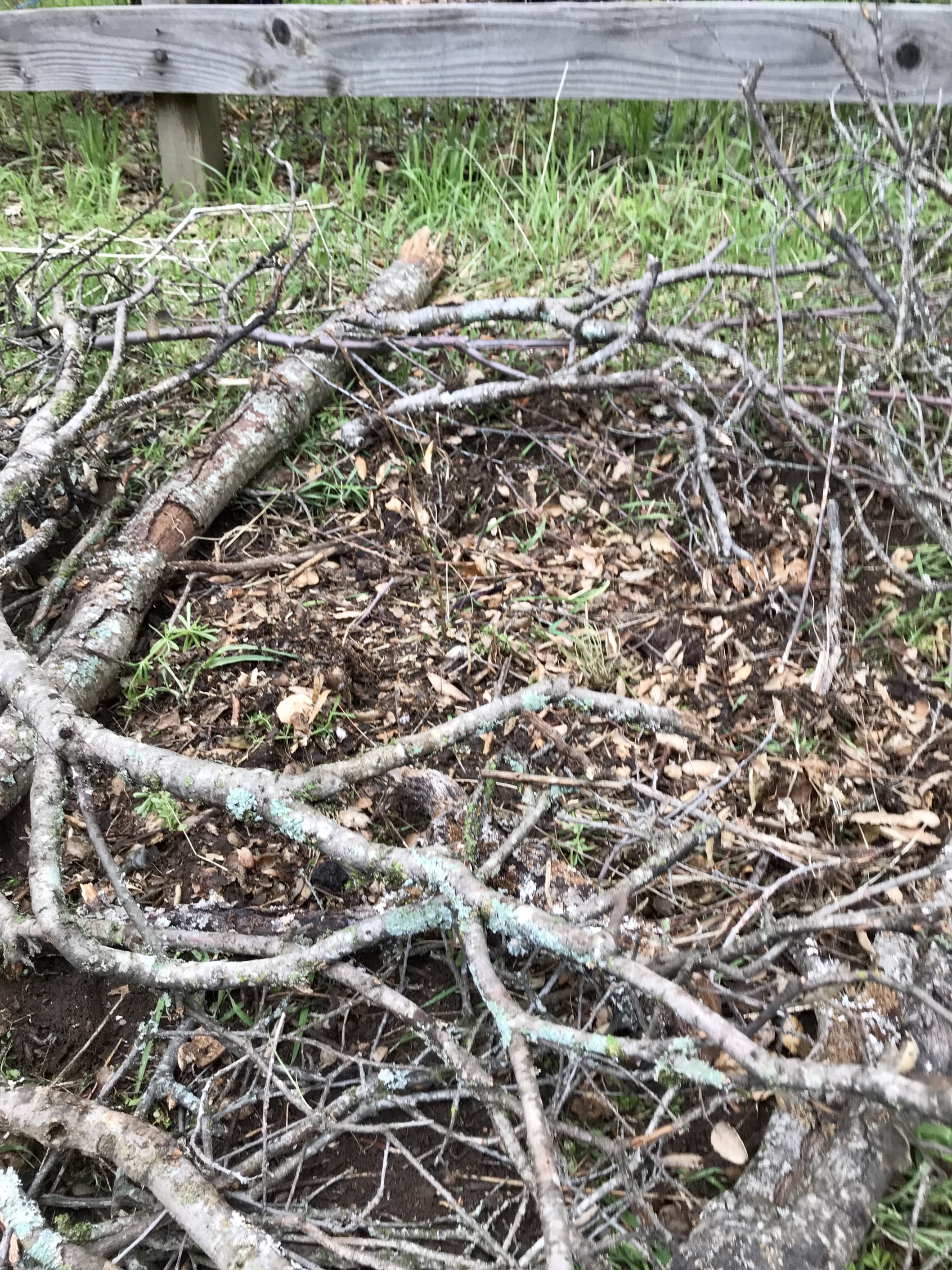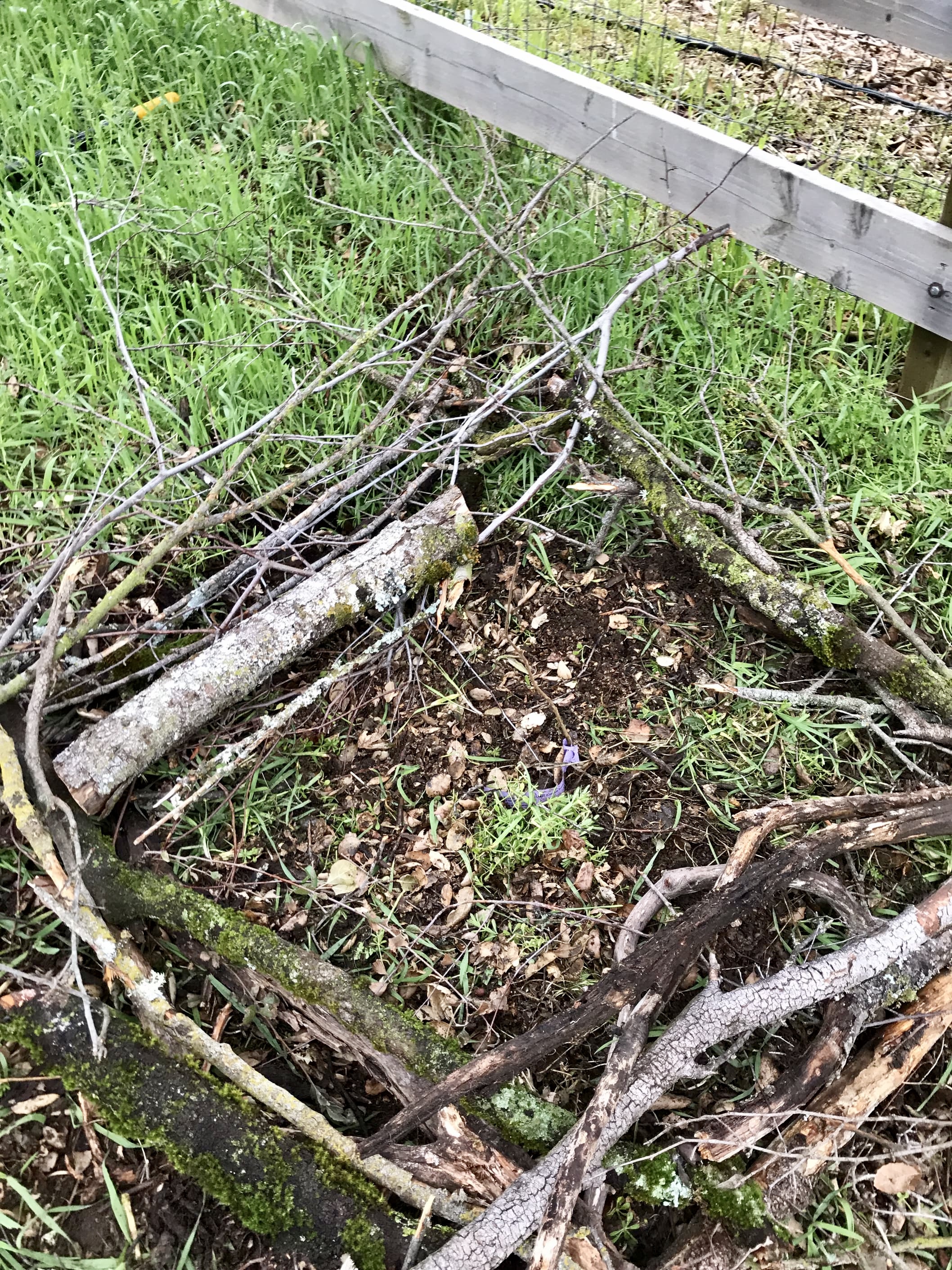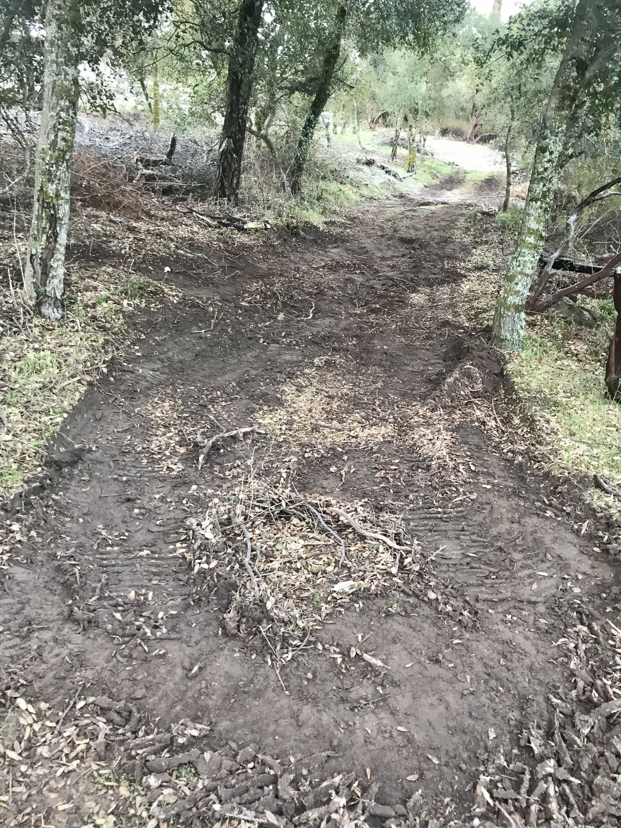 Yesterday the chippers came out again, and it was sprinkling all morning, and of course they got the chipper stuck. They tried to get it out using a small skid steer with no luck, and it crushed a couple manzanita and a small oak. They left it here with the idea of coming back today with a bigger skid steer. It’s a visceral example of how machines can improve a landscape quickly, and destroy it just as fast