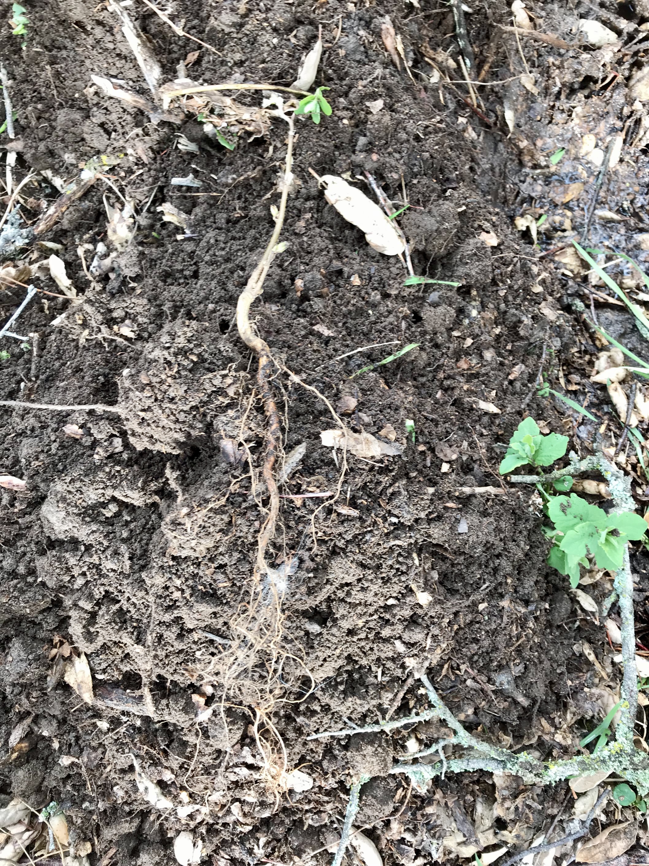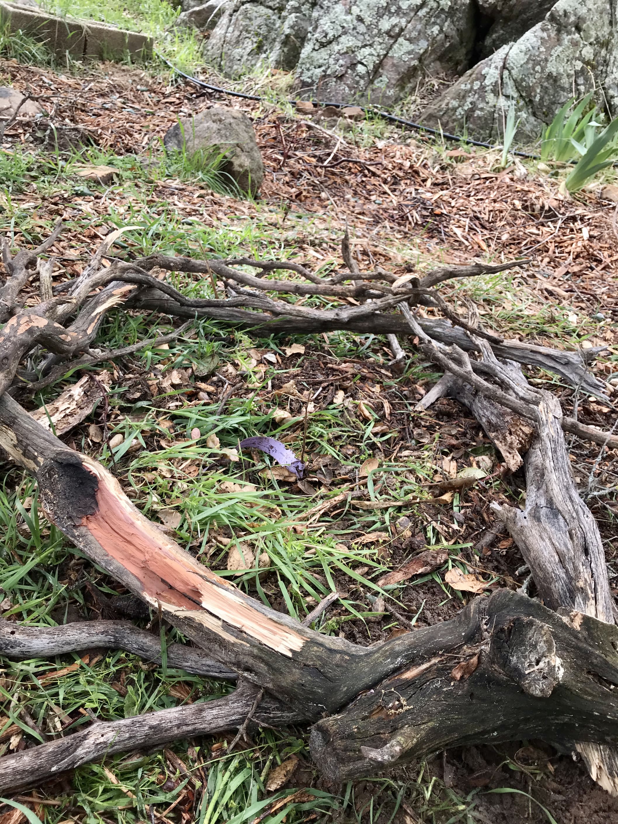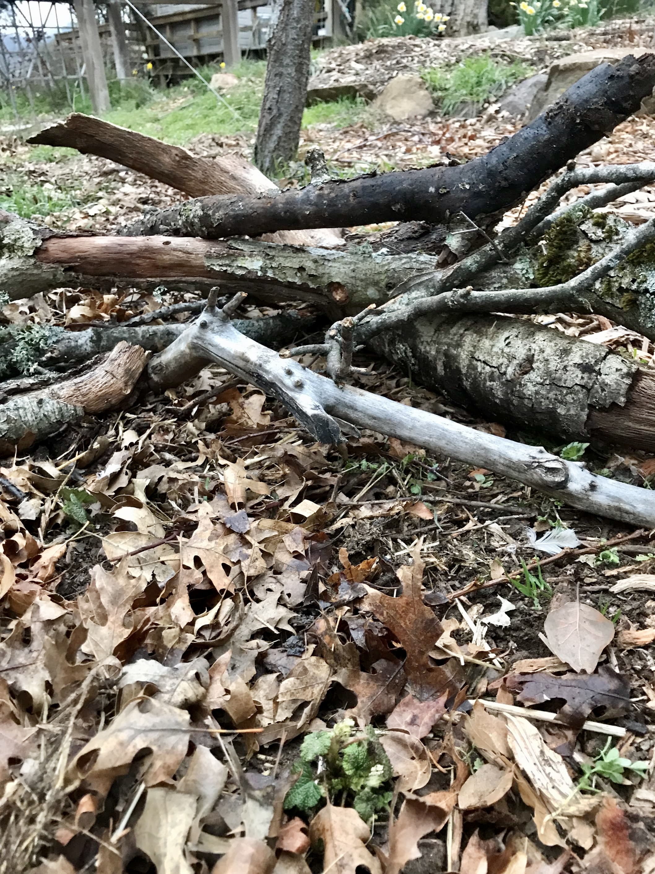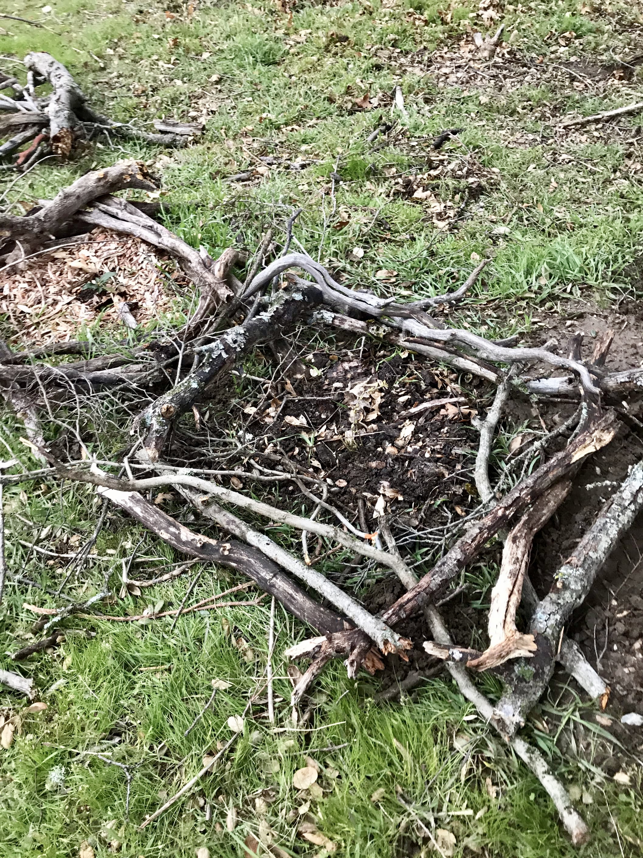 Yesterday the chippers came out again, and it was sprinkling all morning, and of course they got the chipper stuck. They tried to get it out using a small skid steer with no luck, and it crushed a couple manzanita and a small oak. They left it here with the idea of coming back today with a bigger skid steer. It’s a visceral example of how machines can improve a landscape quickly, and destroy it just as fast