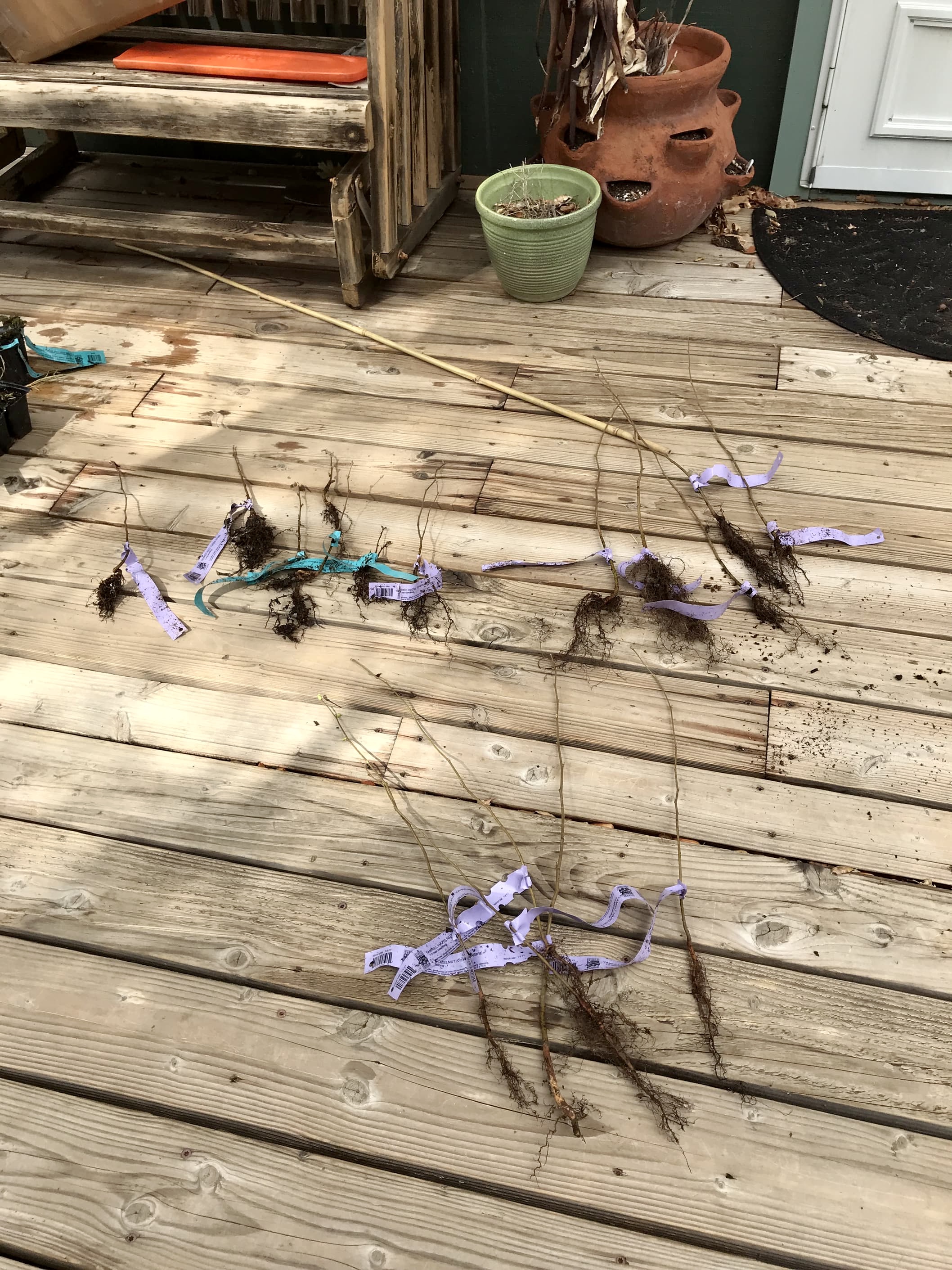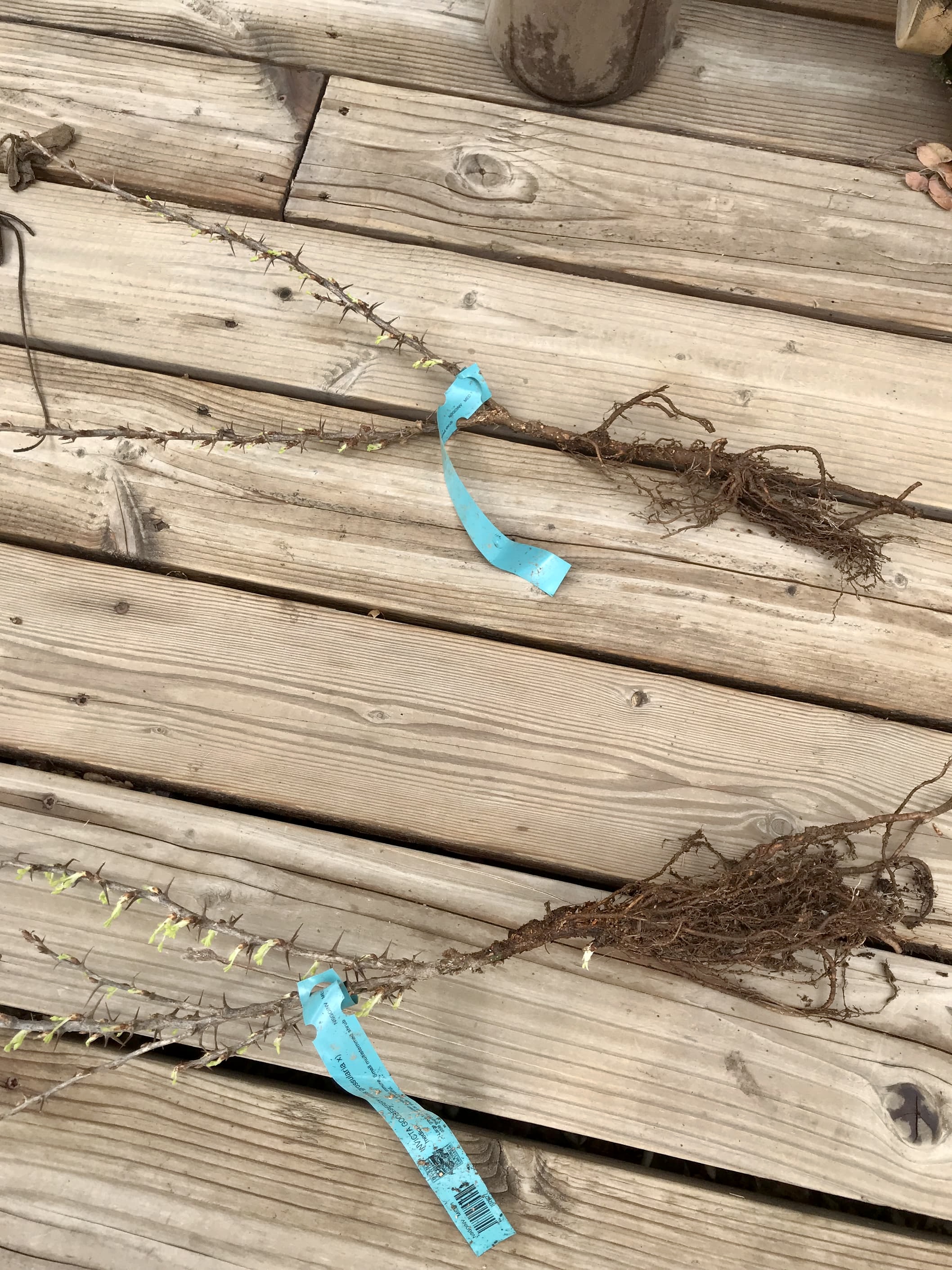 The hazelnuts (only planted 7 so far), which include the native beaked hazelnut as well as Yamhill, Halle’s Giant, and a couple larger Jeffersons, got planted back behind the garden. I’m planning to put the rest down around the outskirts of the meadow, replacing some of the manzanita that fell during the storm.
