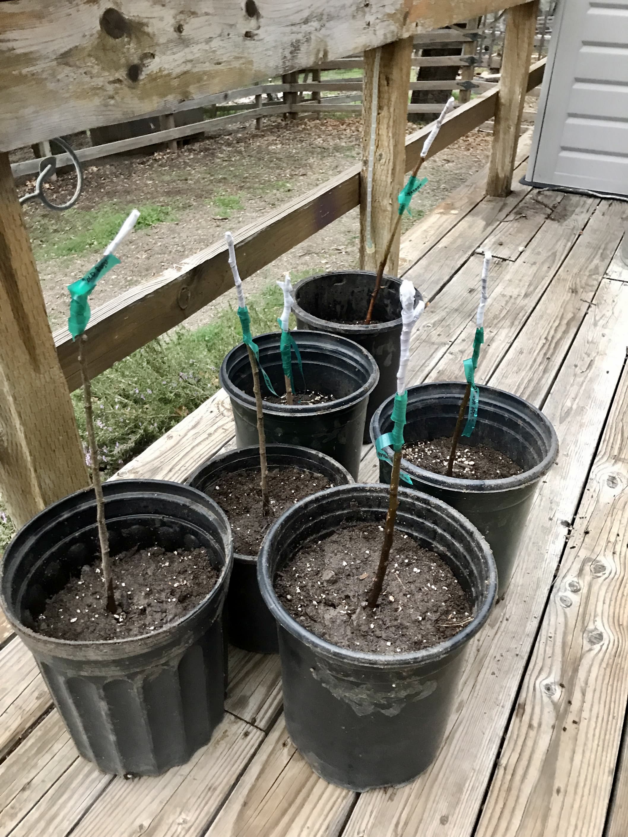Bernie potted up our grafts from Sunday and prepared one of the raised beds for strawberries (the one with buried Bokashi), adding some sphagnum moss to make the soil a bit more acidic. Going to plant those this morning.